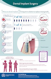 There are several options available for patients who are missing permanent teeth. A dental implant is one option. Rather than resting on the gum line like removable dentures or using adjacent teeth as anchors as with fixed bridges, dental implants are long-term replacements that our oral surgeons surgically place in the jawbone. Composed of titanium metal that “fuses” with the jawbone through a process called “osseointegration,” dental implants never slip or make embarrassing noises to advertise the fact that you have “false teeth.” Dental implants also do not decay and, if properly cared for, can last a lifetime.
